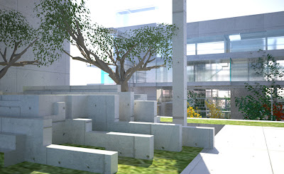 במט מתוך הגן במרכז הבניין בכניסה לאתר
